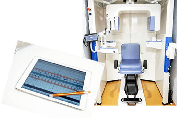 虫歯の有無や広がり、顎の骨の状況(歯周病進行の判断材料になります)、顎の関節など全体的な状態確認を行います。お口全体の写真撮影