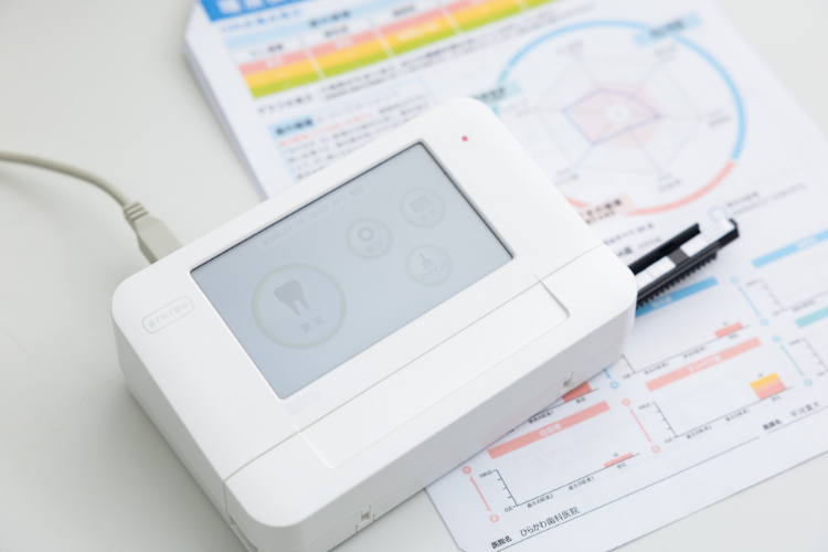 この検査は、虫歯や歯周病のリスクを数値で測定し、その結果をわかりやすくご説明することを目的としています。当院では「SillHa(シルハ)」という専用機器を用いて、約5分で口腔内の状態を詳しく分析します。