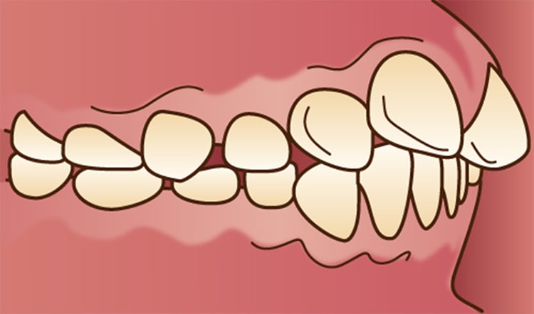 上の歯が下の歯よりも前方に突出した状態。もしくは下の歯が後ろに入っている状態。