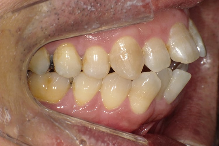 奥歯を咬み合わせた際に、上の前歯で下の前歯が隠れてしまうくらい咬み合わせが深い状態。